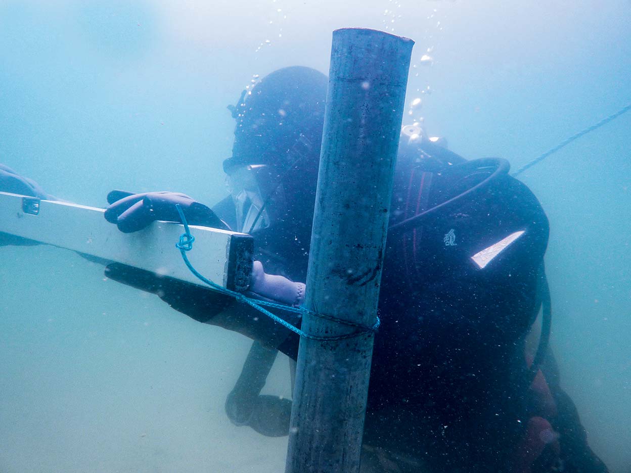 6. Bajo el mar, los tubos se alinean mediante globos de nivelación.
