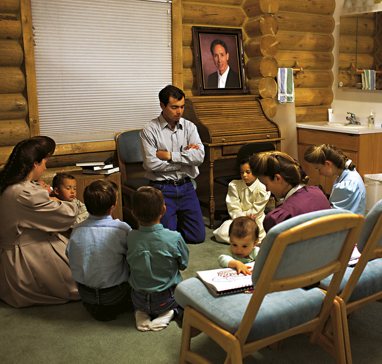 La poligamia es ilegal en EE.UU., pero parece que, en el caso de los mormones, las autoridades miran hacia otro lado. Los apellidos entre los mormones se repiten de manera excepcional; casi todos son Jeffs, Jessop o Blackmore. Practican la poligamia desde el inicio. Joseph Smith, el fundador, tuvo diez esposas. Con el tiempo, la mayoría de los mormones aceptaron las leyes del país: el matrimonio único o el pago de impuestos (algo a lo que los pioneros también se resistían). Pero algunas comunidades, como la liderada por Rulon Jeffs (el padre de Warren, en la foto enmarcada de la derecha), se distanciaron para seguir practicando la poligamia a niveles exponenciales: Rulon tuvo hasta 75 esposas. Los líderes de mayor edad tenían tantas mujeres que tuvieron que expulsar a cientos de jóvenes de la secta para no competir por ellas.