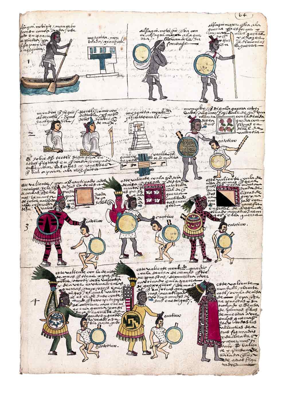 El Códice Mendoza, que el Instituto Nacional de Antropología e Historia (INAH) de México acabó de digitalizar en 2015, es la mejor ventana para asomarse a aquella sociedad cohesionada por el temor a unos dioses intimidatorios y dominada por la nobleza, pero que proporcionaba la oportunidad de ascender a los que se distinguían en el combate.