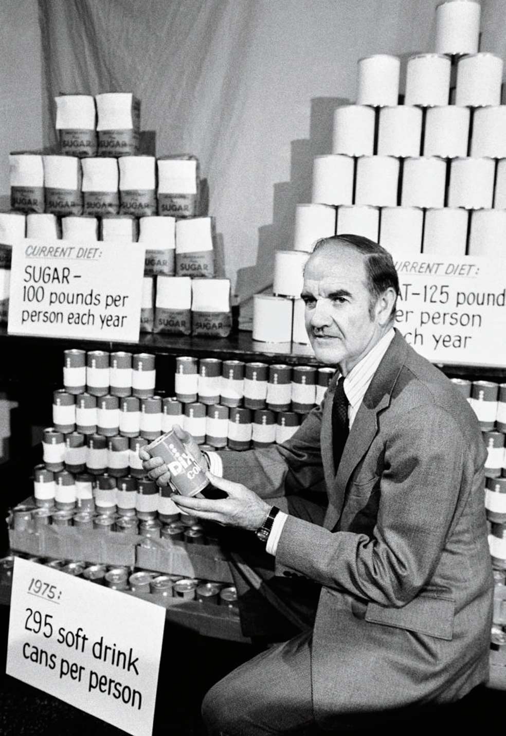El responsable es un senador estadounidense llamado George McGovern. McGovern fue asesor especial del presidente John F. Kennedy. Un político cabal que se oponía a la guerra de Vietnam y defendía la renta básica. Entre sus cometidos, estuvo el de dirigir en 1977 un comité del Senado encargado de estudiar la relación entre enfermedad y alimentación en Estados Unidos.