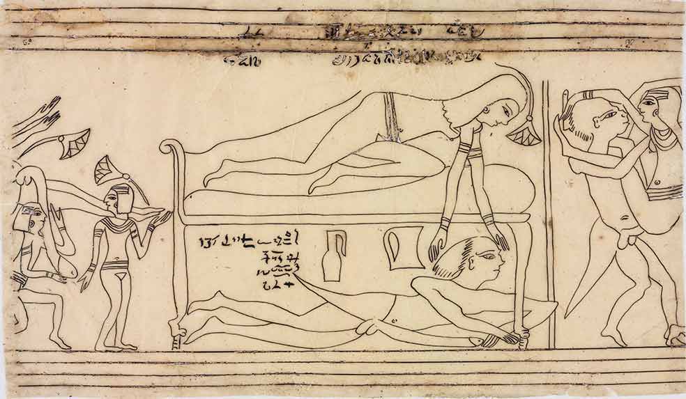 En el sexo la mentalidad no era mojigata. «El concepto de sexualidad era libre y abierto. No existía la etiqueta de homosexualidad porque se consideraba un comportamiento tan normal que no era necesario calificarlo», cuenta Nacho Ares. Las ilustraciones eróticas del Papiro de Turín –el Kamasutra del antiguo Egipto, de hacia 1200 a. C.– demuestran que al menos las capas altas de la sociedad no eran pacatas. «Había una mentalidad abierta en cuanto al sexo, pero hay que diferencias entre estratos altos y bajos. El matrimonio entre hermanos se practicaba por razones de gobierno y de dinastía y no se consideraba incesto, pero no se daba en los estratos bajos», puntualiza Ares. Tampoco eran pudorosos. Hay representaciones de agricultores, pescadores, sirvientes, hombres y mujeres, trabajando desnudos. Y hubo un tiempo en el que los vestidos de las mujeres llevaban tirantes laterales que dejaban los pechos al aire.