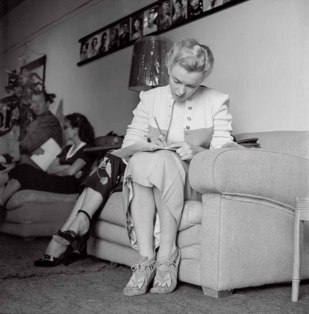 La psicoterapia y la interpretación fueron de la mano en la carrera de Marilyn. La actriz era ya una celebridad cuando en 1955 ingresó en el Actors Studio, la más renombrada escuela de interpretación de la época, por la que pasaron Marlon Brando, Julie Harris, James Dean, Montgomery Clift… Mientras ella se esforzaba por pasar inadvertida en un aula de la calle 46 de Nueva York, sentada en las filas de atrás y cubriendo su inconfundible melena rubia con un pañuelo, a unas manzanas de allí una Marilyn de quince metros de altura anunciaba La tentación vive arriba, de Billy Wilder, con una de las imágenes más icónicas de la historia del cine: el vestido blanco alzándose, movido por el viento de los tubos de ventilación del metro.